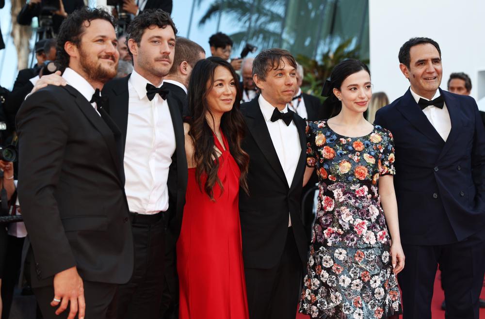 CANNES, 26 mayo, 2024 (Xinhua) -- Imagen del 25 de mayo de 2024 del director Sean Baker (3-d) posando junto a miembros del elenco de la película "Anora" en la alfombra roja previa a la ceremonia de clausura de la edición 77 del Festival de Cine de Cannes, en Cannes, en el sur de Francia. (Xinhua/Gao Jing)