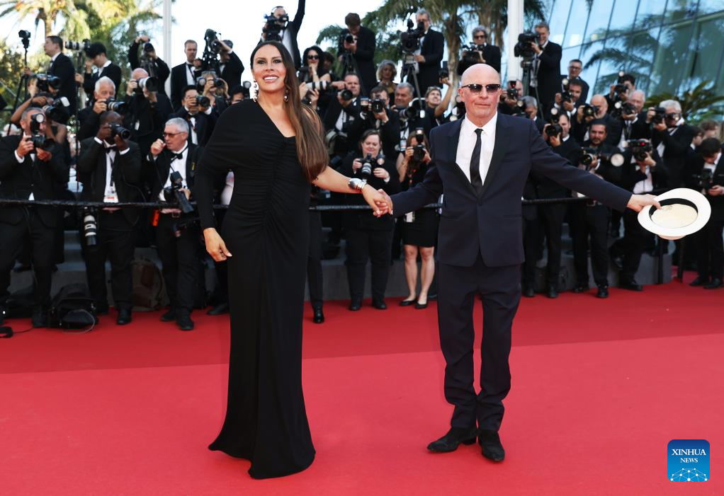 CANNES, 26 mayo, 2024 (Xinhua) -- Imagen del 25 de mayo de 2024 de la actriz Karla Sofía Gascón (i) y el director francés Jacques Audiard llegando a la ceremonia de clausura de la 77 edición del Festival de Cine de Cannes, en Cannes, en el sur de Francia. (Xinhua/Gao Jing)