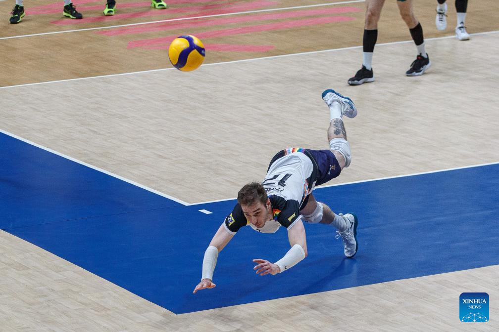 RIO DE JANEIRO, 26 mayo, 2024 (Xinhua) -- Thales Hoss, de Brasil, intenta salvar el balón durante el partido de la ronda preliminar de la Liga de Naciones de Voleibol 2024 masculina de la Federación Internacional de Voleibol (FIVB) entre Brasil e Italia, en Río de Janeiro, Brasil, el 26 de mayo de 2024. (Xinhua/Claudia Martini)