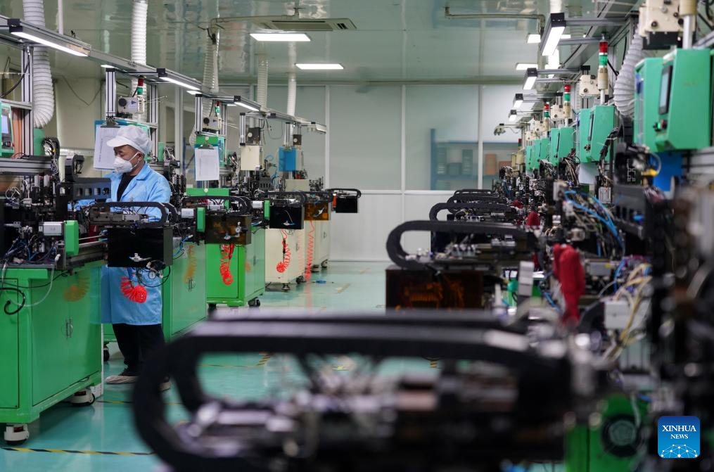 LEQING, 27 mayo, 2024 (Xinhua) -- Un empleado trabaja en un fabricante de equipo de comunicaciones, en la ciudad de Leqing, en la provincia de Zhejiang, en el este de China, el 27 de mayo de 2024. El sector industrial de China registró un mayor impulso de crecimiento el mes pasado, con un fuerte repunte de las ganancias que sugiere una recuperación sostenida. Las ganancias de las principales empresas industriales de China aumentaron un 4 por ciento interanual en abril de 2024, revirtiendo una caída del 3,5 por ciento registrada el mes anterior, dijo el lunes el Buró Nacional de Estadísticas (BNE). El crecimiento de los ingresos de dichas empresas también experimentó un cambio con una expansión del 3,3 por ciento registrada el mes pasado, en comparación con una caída del 1,2 por ciento en marzo. (Xinhua/Cai Kuanyuan)