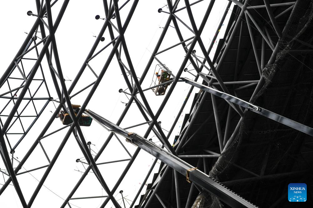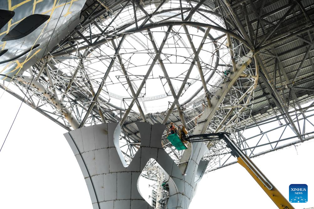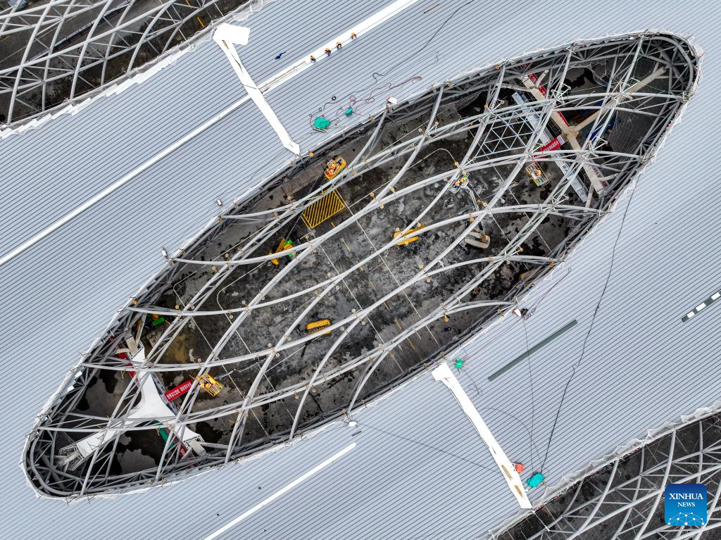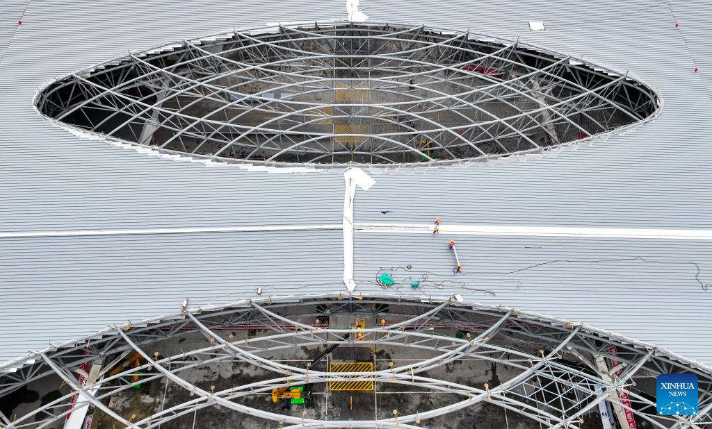 CHONGQING, 28 mayo, 2024 (Xinhua) --Empleados trabajan en el sitio de construcción de la Estación de Ferrocarril del Este de Chongqing, en Chongqing, en el suroeste de China, el 28 de mayo de 2024. La construcción del techo de estructura de acero de la Estación Ferroviaria del Este de Chongqing se completó el martes. (Xinhua/Wang Quanchao)
