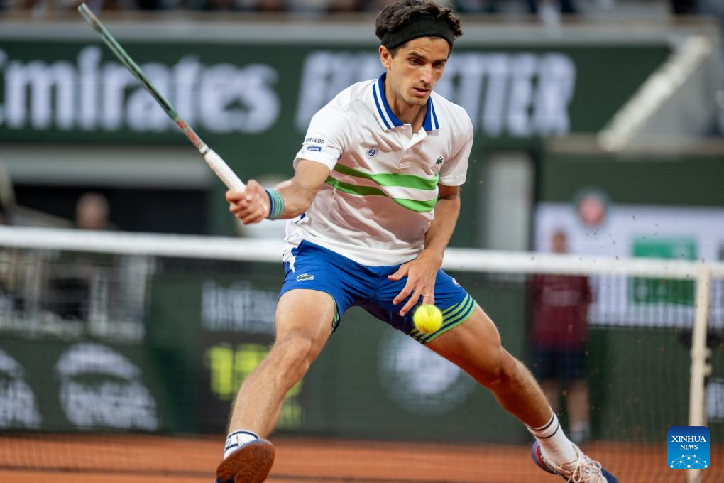 PARIS, 29 mayo, 2024 (Xinhua) -- Imagen del 28 de mayo de 2024 de Pierre-Hugues Herbert devolviendo la pelota durante el partido de la primera ronda de individuales masculinos entre Novak Djokovic, de Serbia, y Pierre-Hugues Herbert, de Francia, en el torneo de tenis Abierto de Francia, en Roland Garros, en París, Francia. (Xinhua/Meng Dingbo)