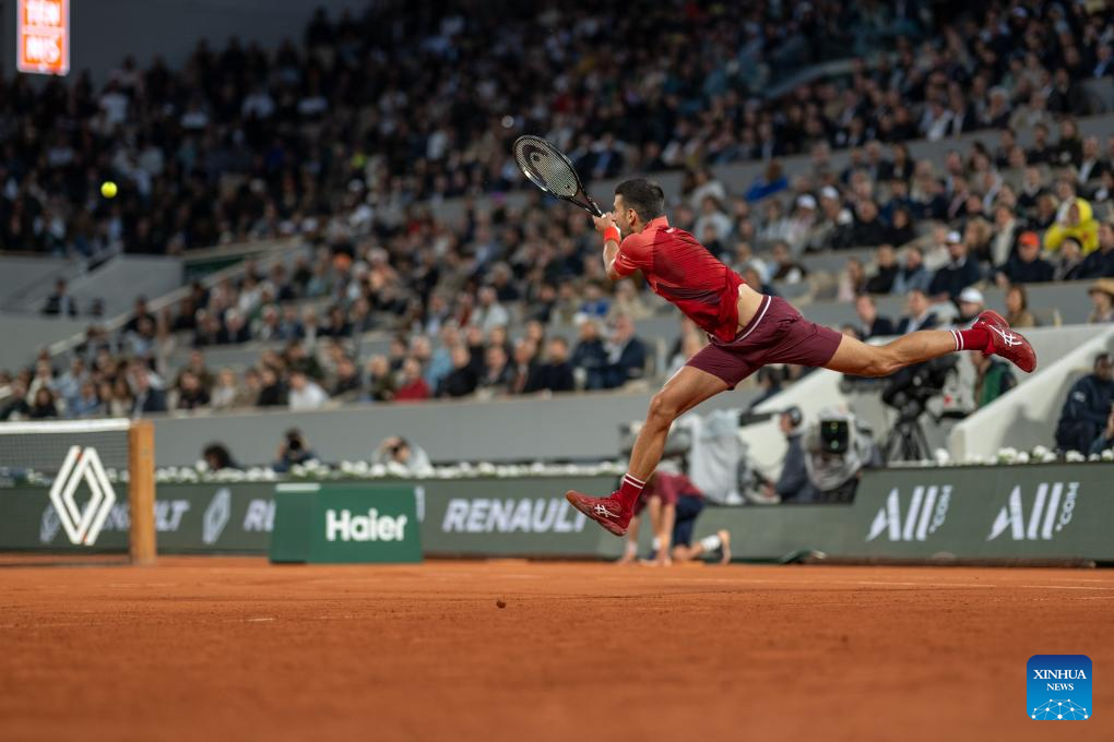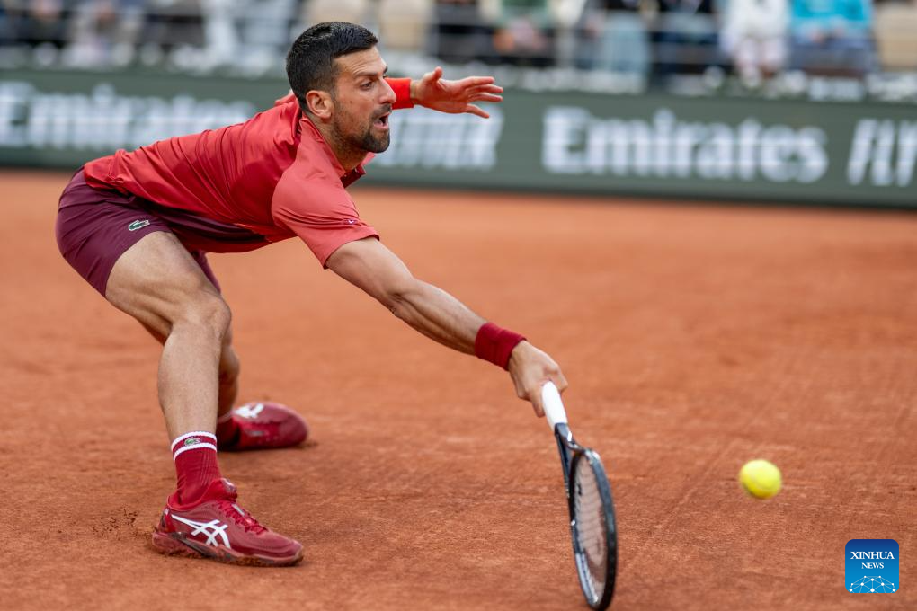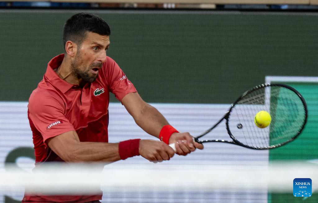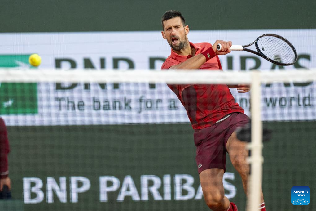 PARIS, 29 mayo, 2024 (Xinhua) -- Imagen del 28 de mayo de 2024 de Novak Djokovic devolviendo la pelota durante el partido de la primera ronda de individuales masculinos entre Novak Djokovic, de Serbia, y Pierre-Hugues Herbert, de Francia, en el torneo de tenis Abierto de Francia, en Roland Garros, en París, Francia. (Xinhua/Meng Dingbo)