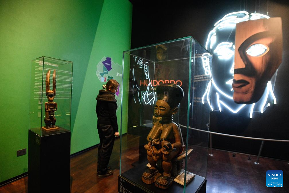 SANTIAGO, 28 mayo, 2024 (Xinhua) -- Un hombre visita la exposición "Huidobro entre la vanguardia y el arte africano" en el Centro de Extensión de la Universidad Católica, en Santiago, capital de Chile, el 28 de mayo de 2024. (Xinhua/Jorge Villegas)