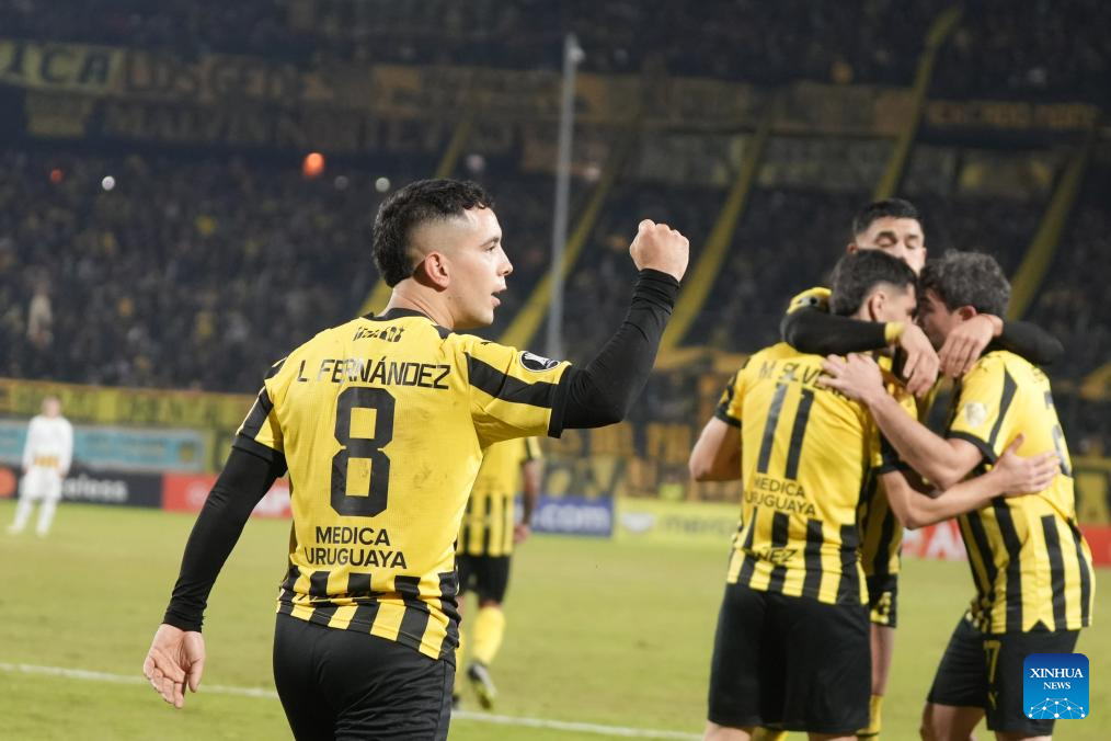 MONTEVIDEO, 29 mayo, 2024 (Xinhua) -- Imagen del 28 de mayo de 2024 del jugador Leonardo Fernandez (i), de Peñarol de Uruguay, festejando su anotación, durante el partido correspondiente al Grupo G de la Copa Conmebol Libertadores ante Rosario Central de Argentina, celebrado en el Estadio Campeón del Siglo, en Montevideo, capital de Uruguay. (Xinhua/Nicolás Celaya)
