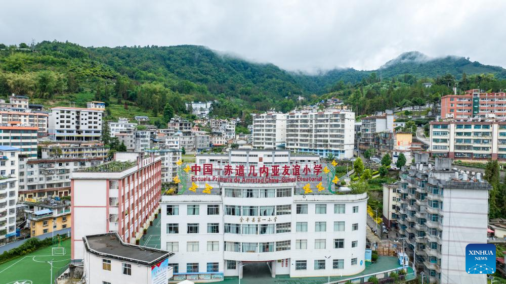 MALABO, 30 mayo, 2024 (Xinhua) -- Imagen aérea tomada con un dron el 27 de mayo de 2024 de la Escuela Primaria de la Amistad China-Guinea Ecuatorial, en el distrito de Jinping, en la provincia de Yunnan, en el suroeste de China. China y Guinea Ecuatorial son buenos amigos y socios, afirmó el martes el presidente chino, Xi Jinping, durante sus conversaciones con Teodoro Obiang Nguema Mbasogo, presidente de la República de Guinea Ecuatorial, en Beijing. (Xinhua/Hu Chao)