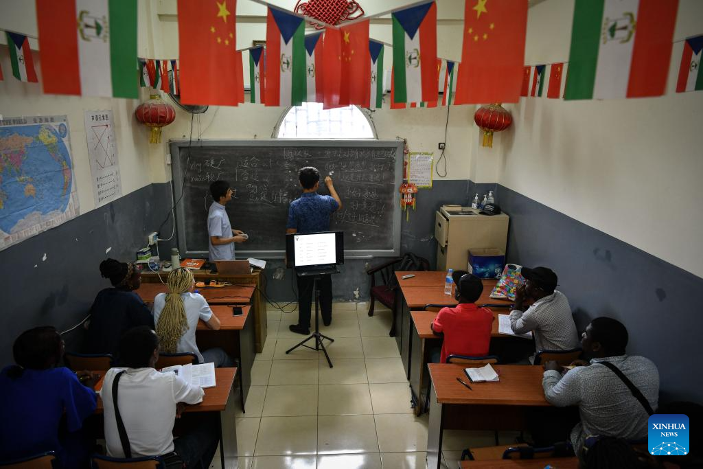 MALABO, 30 mayo, 2024 (Xinhua) -- Imagen del 17 de mayo de 2024 de alumnos tomando una clase de chino en el Instituto Confucio de la Universidad Nacional de Guinea Ecuatorial, en Malabo, Guinea Ecuatorial. China y Guinea Ecuatorial son buenos amigos y socios, afirmó el martes el presidente chino, Xi Jinping, durante sus conversaciones con Teodoro Obiang Nguema Mbasogo, presidente de la República de Guinea Ecuatorial, en Beijing. (Xinhua/Han Xu)