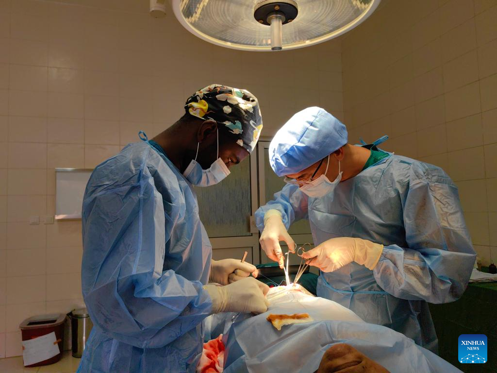 MALABO, 30 mayo, 2024 (Xinhua) -- Imagen del 24 de mayo de 2024 de Liu Anwen (d), cirujano del equipo médico chino enviado a Guinea Ecuatorial, realizando una cirugía con la asistencia de su colega ecuatoguineano a un paciente en el Hospital Regional de Malabo, en Malabo, Guinea Ecuatorial. China y Guinea Ecuatorial son buenos amigos y socios, afirmó el martes el presidente chino, Xi Jinping, durante sus conversaciones con Teodoro Obiang Nguema Mbasogo, presidente de la República de Guinea Ecuatorial, en Beijing. (Xinhua/Equipo médico chino en Guinea Ecuatorial)