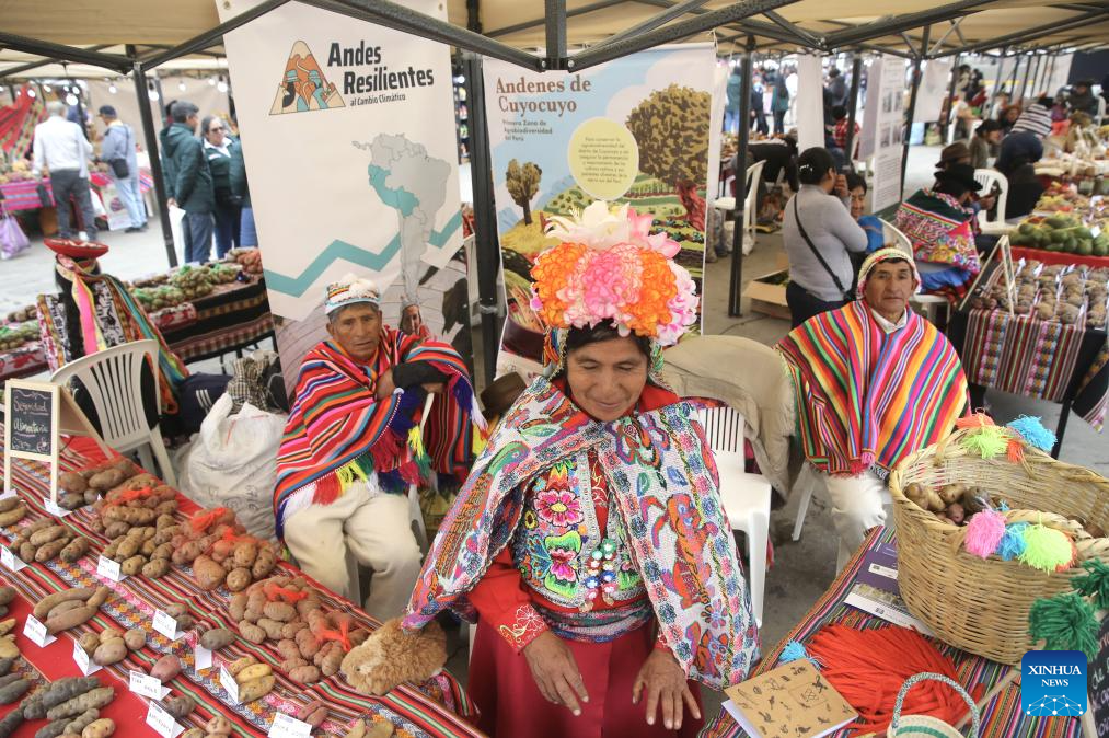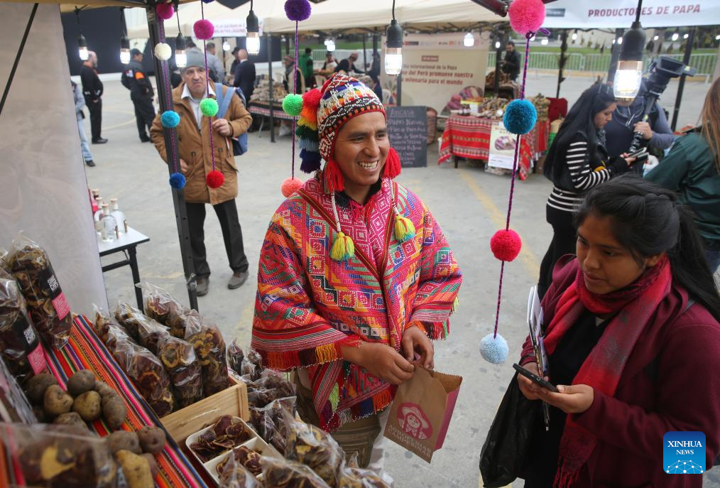 LIMA, 30 mayo, 2024 (Xinhua) -- Agricultores venden papas durante la feria "Cosechando la Diversidad, Alimentando la Esperanza" en el marco del Día Internacional de la Papa que se celebra el 30 de mayo, en el Parque de la Exposición, en Lima, Perú, el 30 de mayo de 2024. (Xinhua/Mariana Bazo)