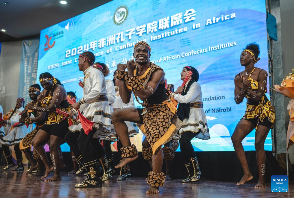 NAIROBI, 30 mayo, 2024 (Xinhua) -- Estudiantes realizan una presentación durante una conferencia conjunta de los institutos Confucio africanos, en la Universidad de Nairobi, en Nairobi, Kenia, el 30 de mayo de 2024. La Conferencia Conjunta de Institutos Confucio en Africa 2024 comenzó el jueves en Nairobi, Kenia, para deliberar sobre la cooperación y desarrollo de los centros de aprendizaje de idioma Chino a lo largo del continente. (Xinhua/Wang Guansen)