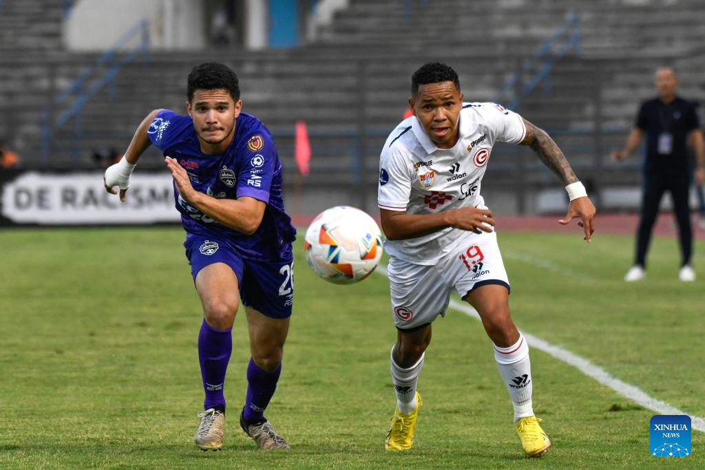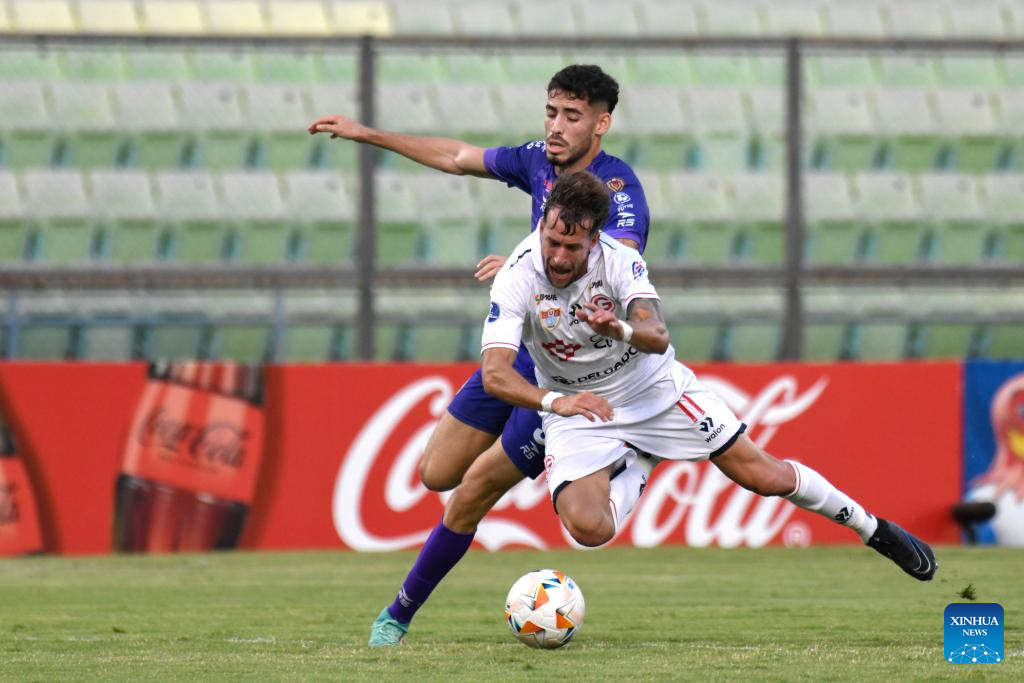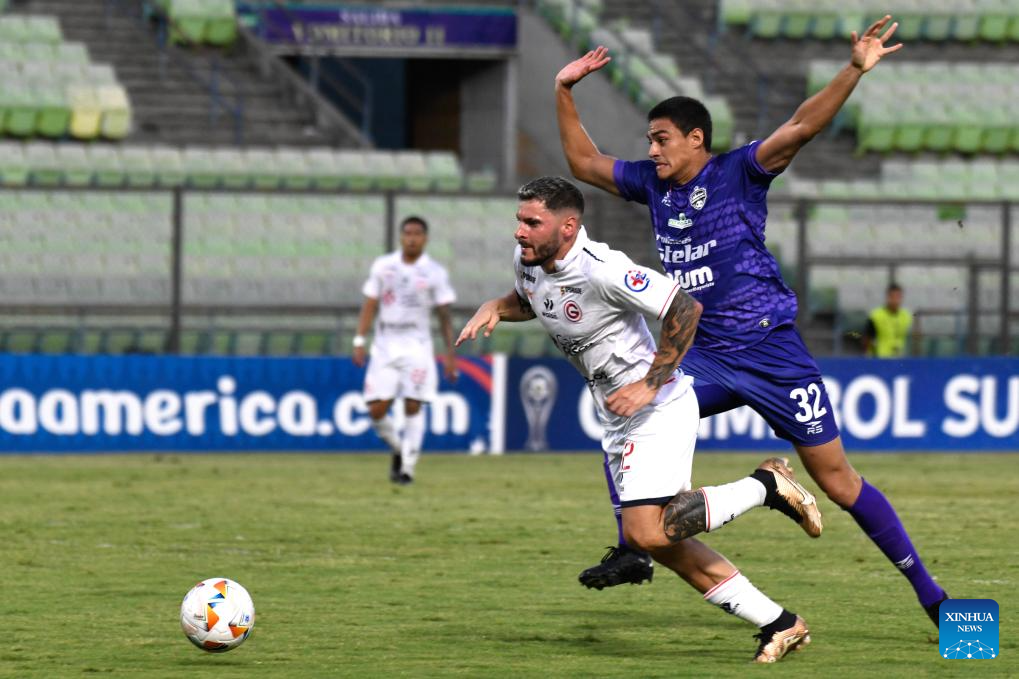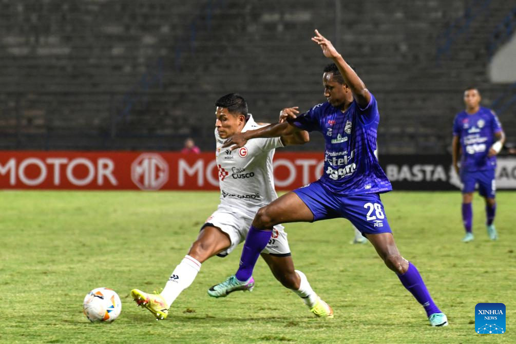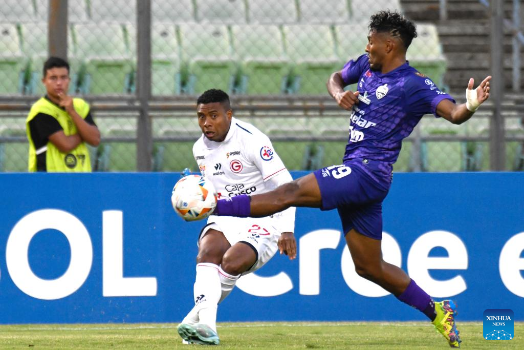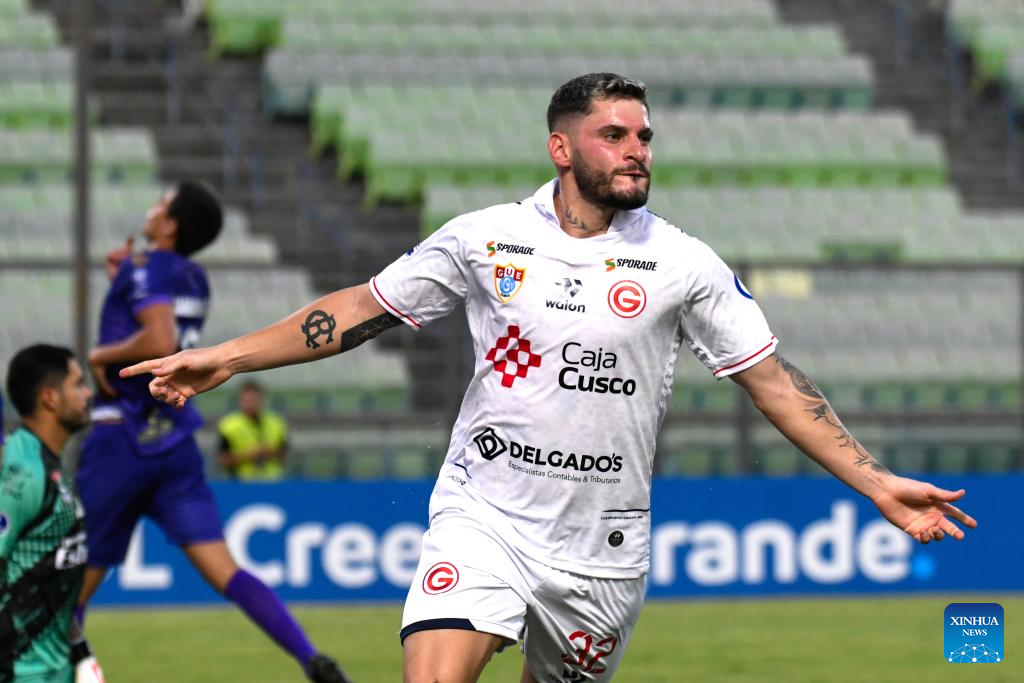 CARACAS, 30 mayo, 2024 (Xinhua) -- Imagen del 29 de mayo de 2024 del jugador Pablo Erustes, de Deportivo Garcilaso de Perú, festejando su anotación durante el partido correspondiente a la sexta fecha del Grupo G de la Copa Conmebol Sudamericana ante Metropolitanos de Venezuela, celebrado en el Estadio Olímpico de la Universidad Central de Venezuela, en Caracas, Venezuela. (Xinhua/Marcos Salgado)