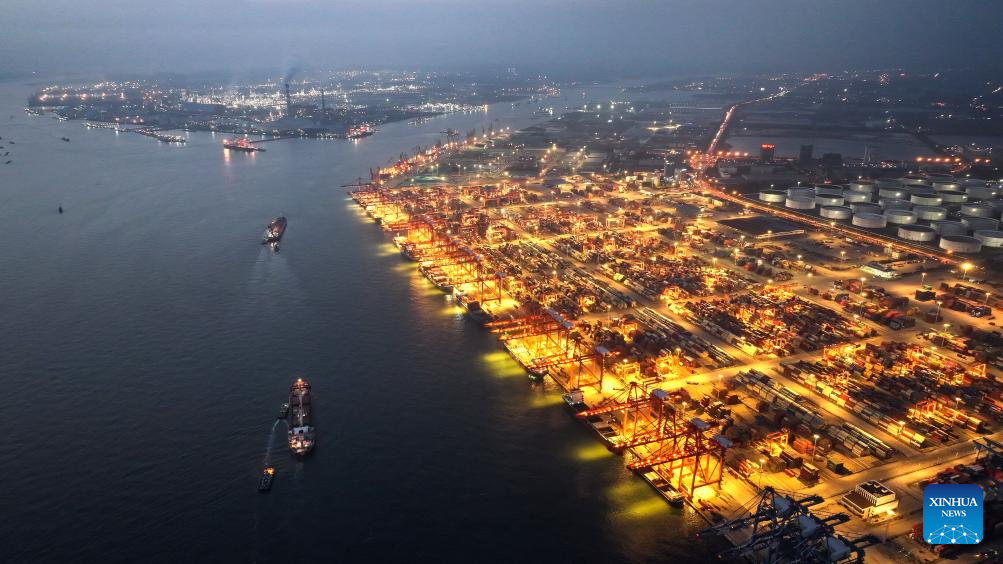 NANNING, 30 mayo, 2024 (Xinhua) -- Imagen tomada con un dron el 9 de mayo de 2024 de la vista nocturna del Puerto de Qinzhou, en Qinzhou, en la región autónoma de la etnia zhuang de Guangxi, en el sur de China. En años recientes, Guangxi ha buscado oportunidades de desarrollo abiertas y orientadas a los océanos para lograr mayores logros en la promoción del desarrollo de alta calidad. (Xinhua/Zhang Ailin)