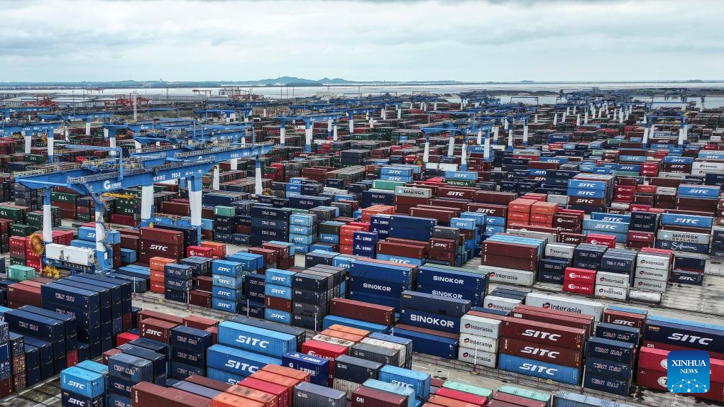 NANNING, 30 mayo, 2024 (Xinhua) -- Imagen tomada con un dron el 19 de mayo de 2024 de un patio de almacenamiento de contenedores en una terminal automatizada de manipulación de contenedores del Puerto de Qinzhou, en Qinzhou, en la región autónoma de la etnia zhuang de Guangxi, en el sur de China. En años recientes, Guangxi ha buscado oportunidades de desarrollo abiertas y orientadas a los océanos para lograr mayores logros en la promoción del desarrollo de alta calidad. (Xinhua/Zhang Ailin)