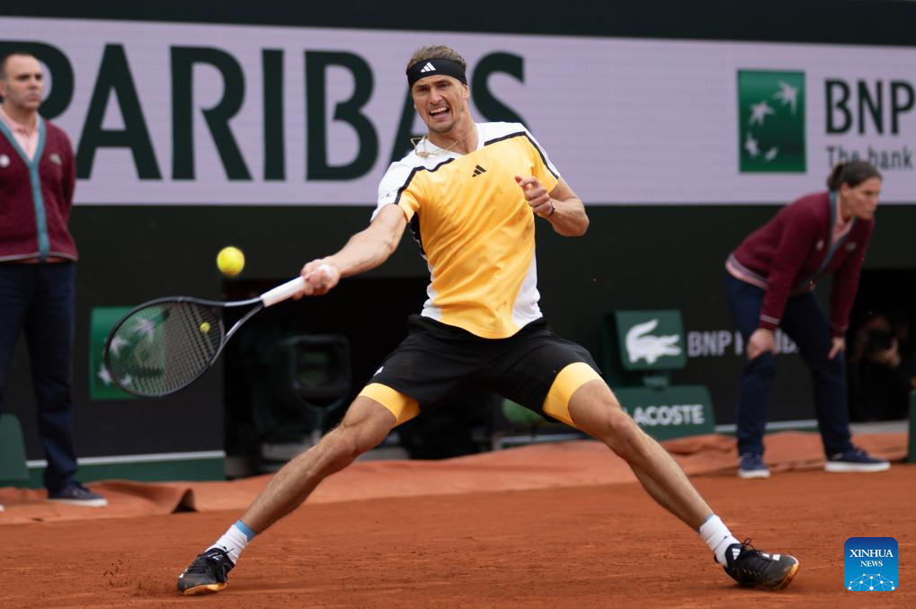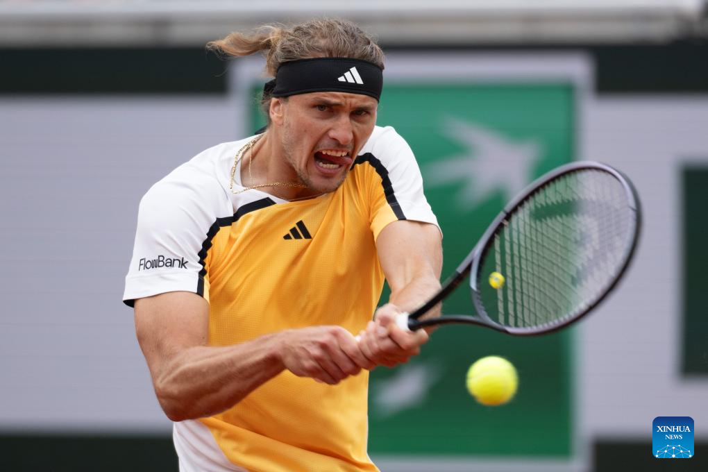 PARIS, 31 mayo, 2024 (Xinhua) -- Imagen del 30 de mayo de 2024 de Alexander Zverev devolviendo la pelota durante el partido de la segunda ronda de individuales masculinos entre Alexander Zverev, de Alemania, y David Goffin, de Bélgica, en el torneo de tenis Abierto de Francia, en Roland Garros, en París, Francia. (Xinhua/Meng Dingbo)