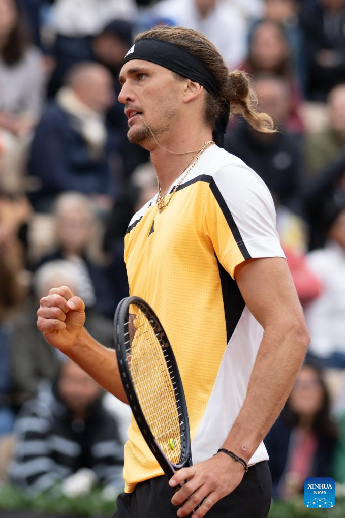 PARIS, 31 mayo, 2024 (Xinhua) -- Imagen del 30 de mayo de 2024 de Alexander Zverev festejando durante el partido de la segunda ronda de individuales masculinos entre Alexander Zverev, de Alemania, y David Goffin, de Bélgica, en el torneo de tenis Abierto de Francia, en Roland Garros, en París, Francia. (Xinhua/Meng Dingbo)