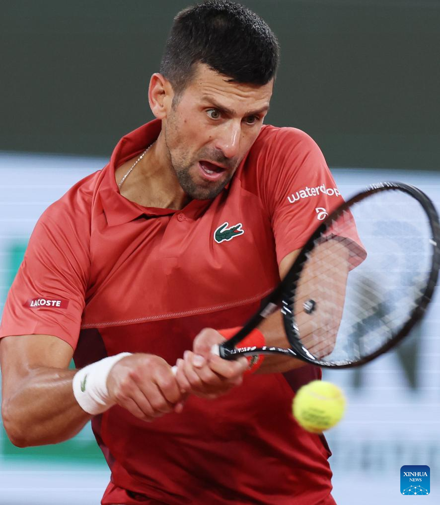 PARIS, 31 mayo, 2024 (Xinhua) -- Imagen del 30 de mayo de 2024 de Novak Djokovic, de Serbia, devolviendo la pelota durante el partido de la segunda ronda de individuales masculinos entre Novak Djokovic, de Serbia, y Roberto Carballes Baena, de España, en el torneo de tenis Abierto de Francia, en Roland Garros, en París, Francia. (Xinhua/Gao Jing)