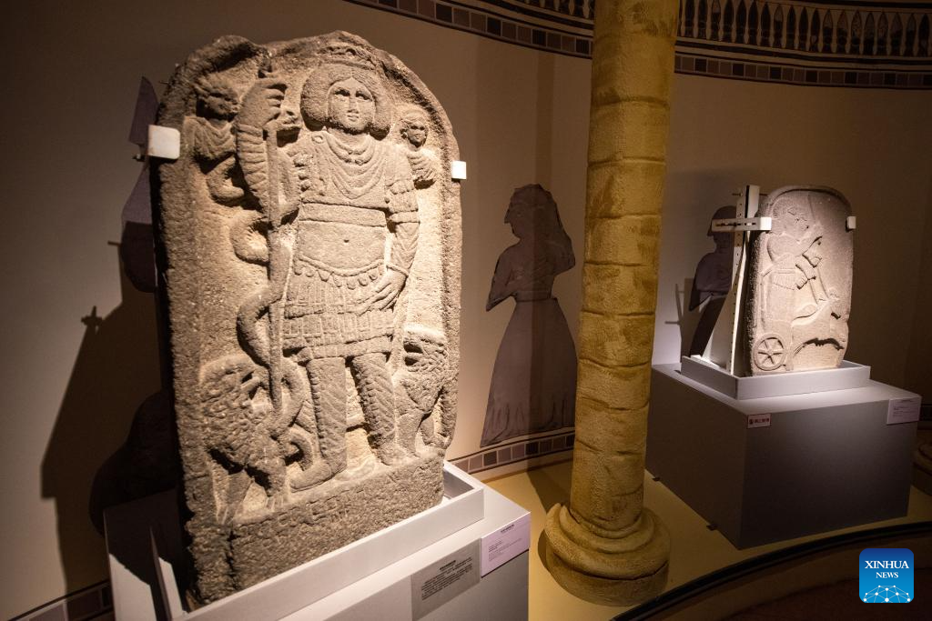YINCHUAN, 31 mayo, 2024 (Xinhua) -- Imagen del 17 de diciembre de 2023 de exhibiciones durante una exposición de reliquias culturales sirias en el Museo de Ningxia, en Yinchuan, en la región autónoma hui de Ningxia, en el noroeste de China. (Xinhua/Li Xulun)