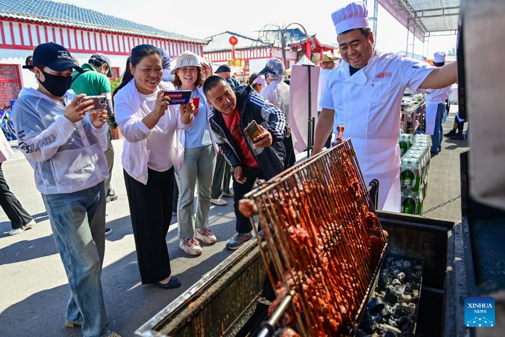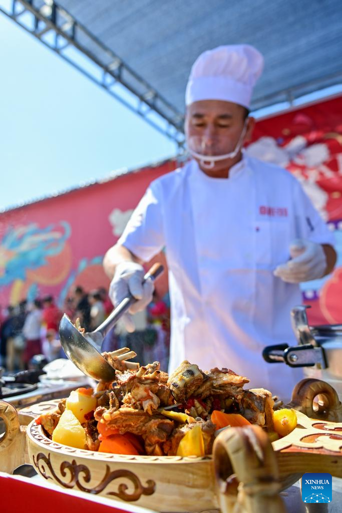 YUMIN, 2 junio, 2024 (Xinhua) -- Personas toman fotografías durante un concurso de cocina de cordero, en el distrito de Yumin de la prefectura de Tacheng, en la región autónoma uygur de Xinjiang, en el noroeste de China, el 2 de junio de 2024. (Xinhua/Ding Lei)