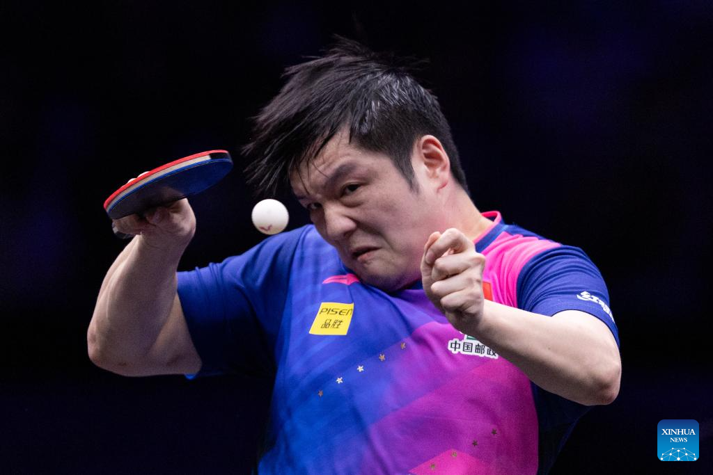 CHONGQING, 3 junio, 2024 (Xinhua) -- Fan Zhendong devuelve la pelota durante la final de individuales masculinos entre Wang Chuqin, de China, y Fan Zhendong, de China, en el WTT Champions Chongqing 2024, en Chongqing, en el suroeste de China, el 3 de junio de 2024. (Xinhua/Huang Wei)