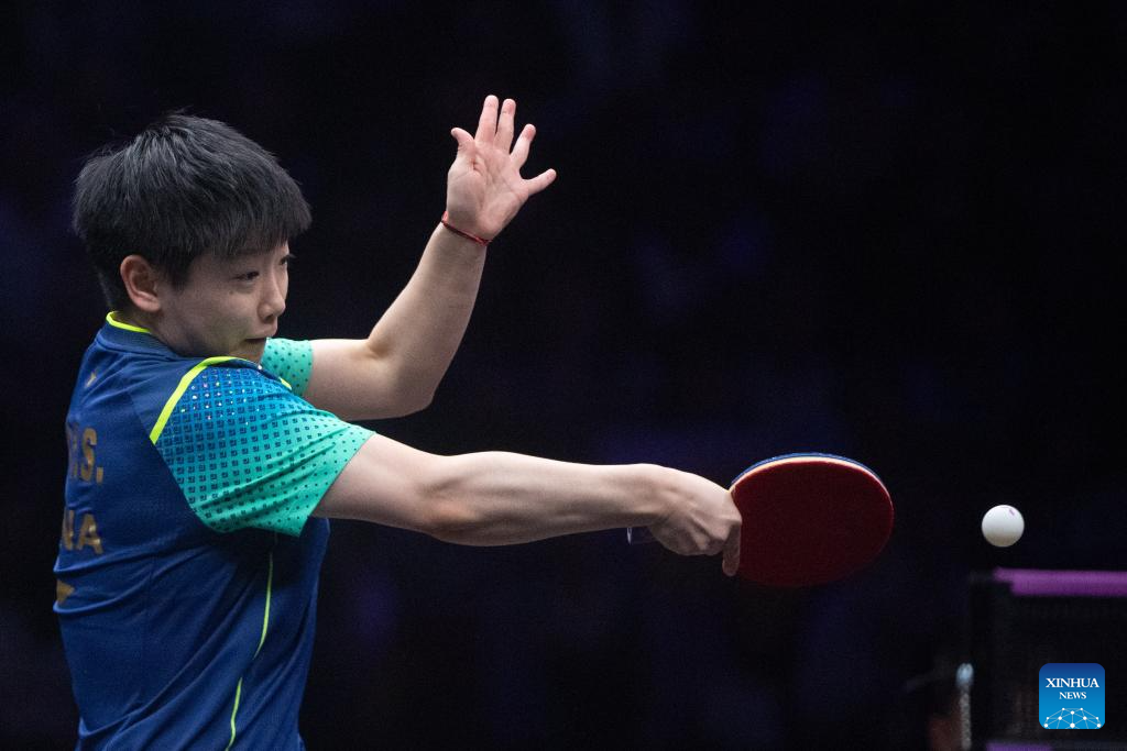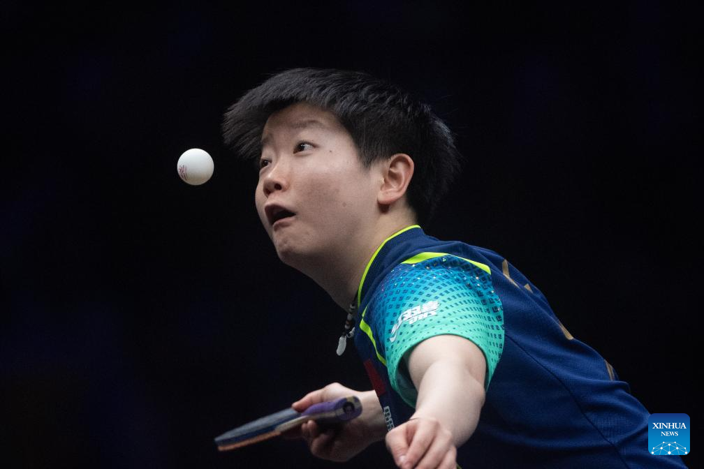 CHONGQING, 3 junio, 2024 (Xinhua) -- Sun Yingsha devuelve la pelota durante la final de individuales femeninos entre Wang Manyu, de China, y Sun Yingsha, de China, en el WTT Champions Chongqing 2024, en Chongqing, en el suroeste de China, el 3 de junio de 2024. (Xinhua/Tang Yi)