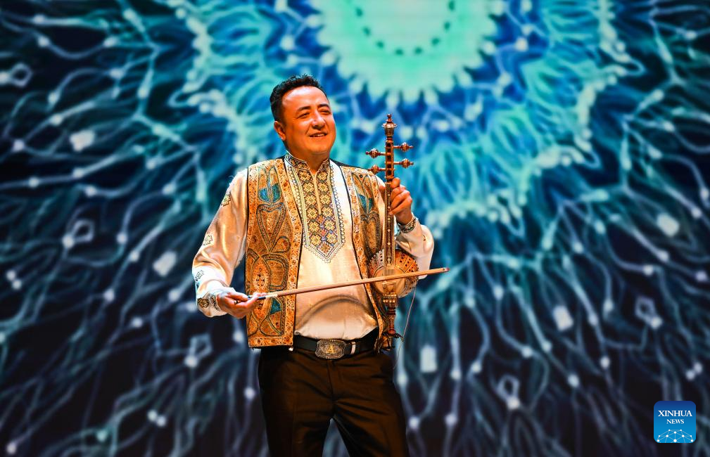 ESTAMBUL, 3 junio, 2024 (Xinhua) -- Imagen del 2 de junio de 2024 de un artista de la región autónoma uygur de Xinjiang de China realizando una presentación en una sala de conciertos, en Estambul, Turquía. Un grupo de artistas de la región autónoma uygur de Xinjiang de China realizó una presentación de música y danza étnica china en Estambul, la ciudad más grande de Turquía, el domingo. El evento, organizado por el Consulado General de China en Estambul, tuvo lugar en una prestigiosa sala de conciertos de la parte europea de la ciudad. (Xinhua/Liu Lei)