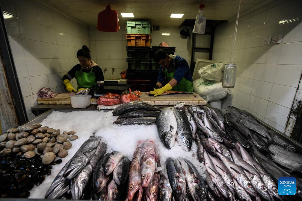 SANTIAGO, 4 junio, 2024 (Xinhua) -- Vendedores limpian pescado en el mercado La Vega Central, en Santiago, capital de Chile, el 4 de junio de 2024. (Xinhua/Jorge Villegas)