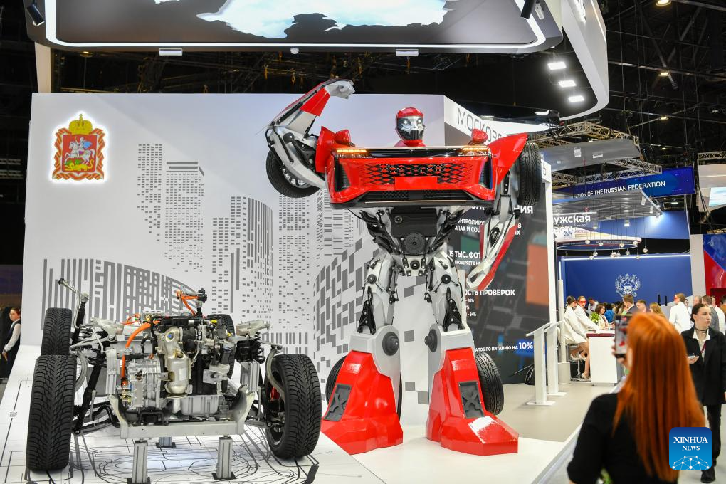 SAN PETERSBURGO, 5 junio, 2024 (Xinhua) -- Personas visitan una sala de exposiciones del 27º Foro Económico Internacional de San Petersburgo (SPIEF, por sus siglas en inglés), en San Petersburgo, Rusia, el 5 de junio de 2024. El 27º SPIEF comenzó el miércoles aquí con la participación de delegados de 139 países y regiones. El foro, cuyo lema es "La formación de nuevas áreas de crecimiento como piedra angular de un mundo multipolar", se centrará en cuestiones económicas clave a las que se enfrentan Rusia, los mercados emergentes y el mundo, según el organizador. (Xinhua/Cao Yang)