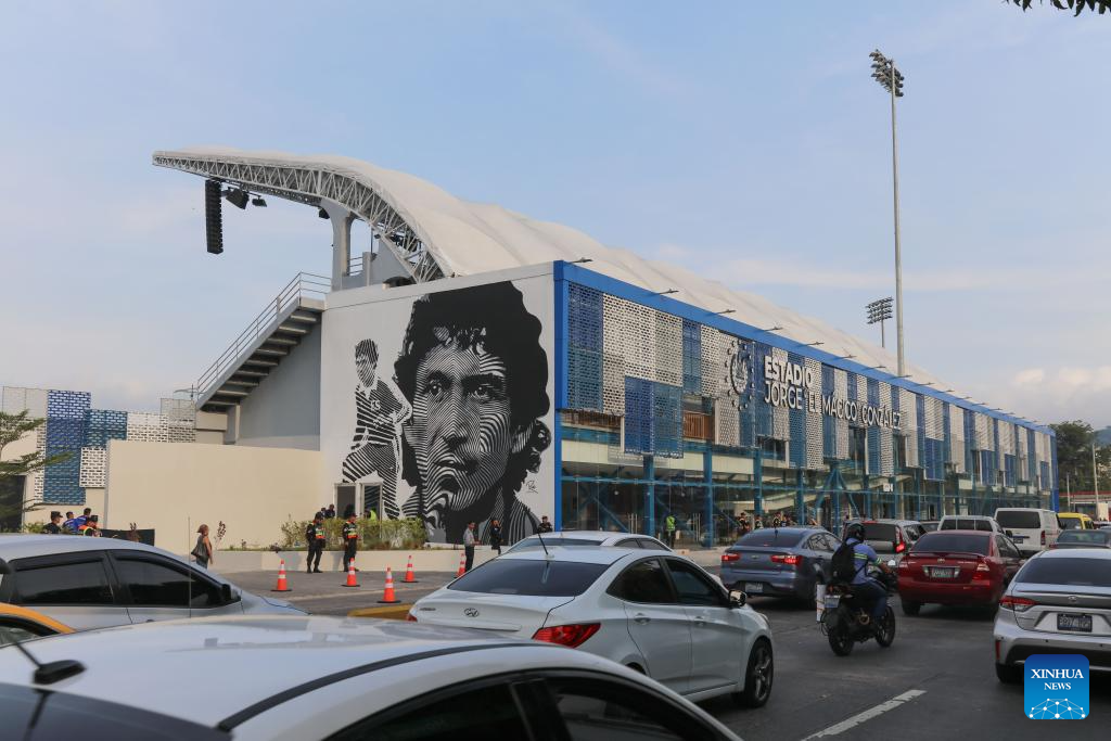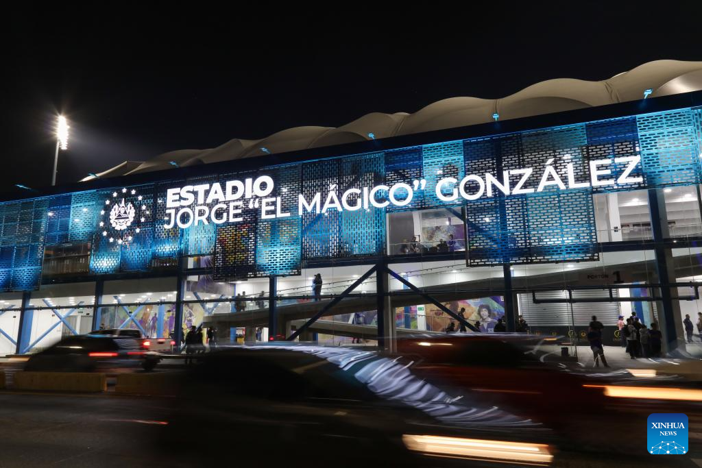 SAN SALVADOR, 5 junio, 2024 (Xinhua) -- Imagen del 4 de junio de 2024 de vehículos circulando frente al Estadio Nacional Jorge "El Mágico" González donde se lleva a cabo la inauguración del Museo de Jorge "El Mágico" González, dedicado a la trayectoria del exfutbolista salvadoreño, en el departamento de San Salvador, El Salvador. (Xinhua/Alexander Peña)
