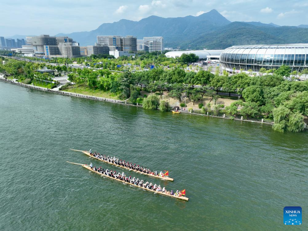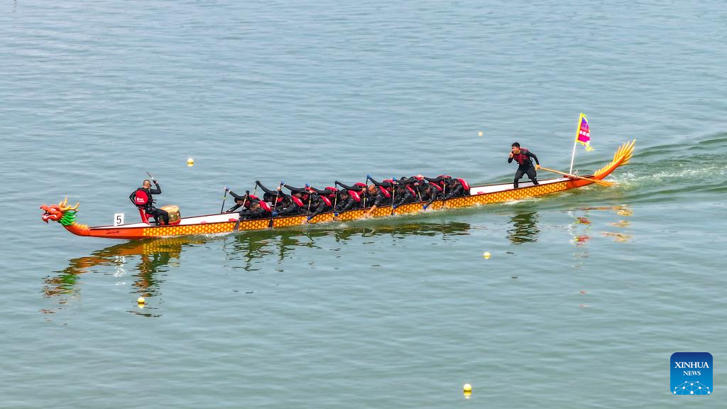 Se celebran carreras de botes del dragón en varios lugares en China para celebrar el próximo Festival Duanwu