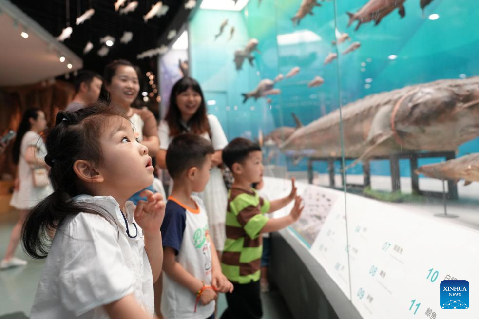 BEIJING, 9 junio, 2024 (Xinhua) -- Niños visitan el Museo de Historia Natural de Chongqing, en la municipalidad de Chongqing, en el suroeste de China, el 9 de junio de 2024. Personas disfrutan de los 3 días de vacaciones por el Festival del Bote del Dragón, también llamado Festival Duanwu, que cae el 10 de junio este año, a través de diversas actividades en todo el país. (Xinhua/Qin Tingfu)