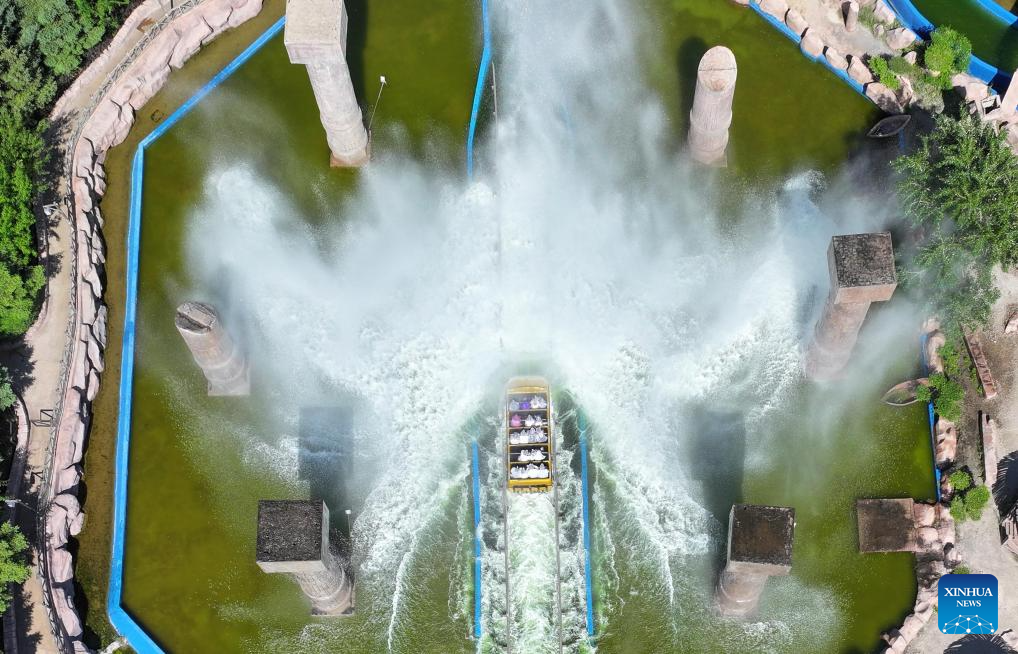 BEIJING, 9 junio, 2024 (Xinhua) -- Vista aérea tomada con un dron el 9 de junio de 2024 de personas divirtiéndose en el Fantawild Adventure, en Shenyang, en la provincia de Liaoning, en el noreste de China. Personas disfrutan de los 3 días de vacaciones por el Festival del Bote del Dragón, también llamado Festival Duanwu, que cae el 10 de junio este año, a través de diversas actividades en todo el país. (Xinhua/Long Lei)