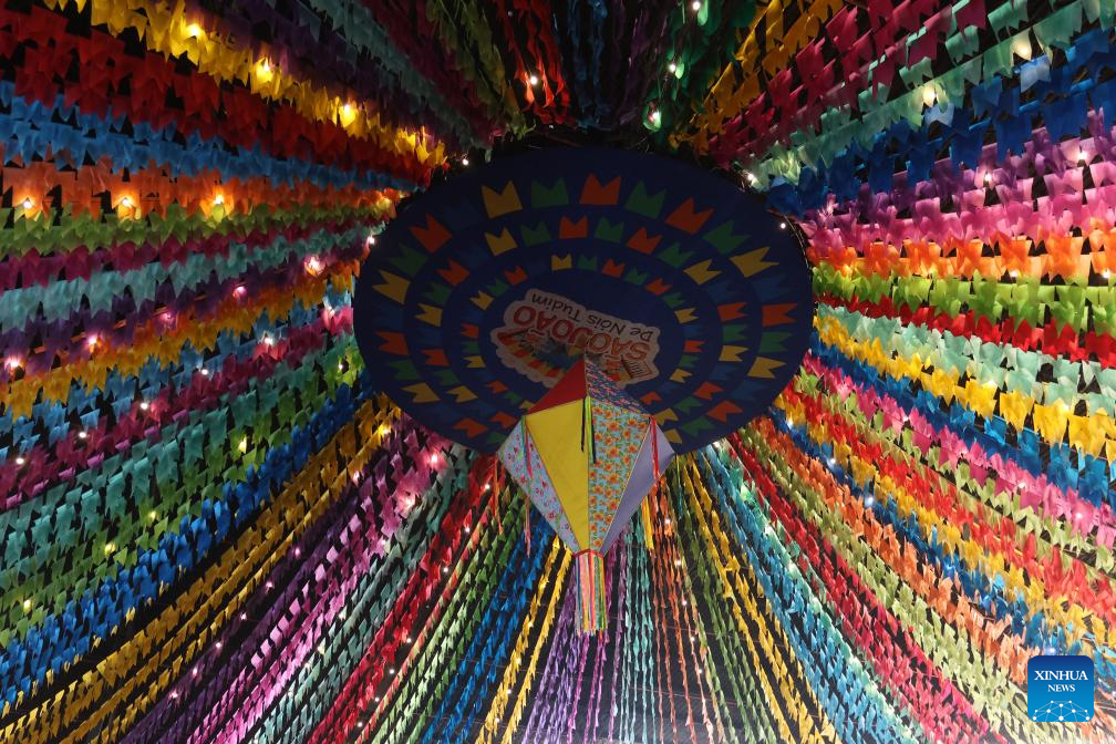 SAO PAULO, 9 junio, 2024 (Xinhua) -- Imagen del 8 de junio de 2024 de decoraciones típicas para el evento de "Sao Joao de Nois Tudim" como parte de las celebraciones de la Fiesta de Junio llevadas a cabo en todo el país durante ese mes, en Sao Paulo, Brasil. (Xinhua/Rahel Patrasso)