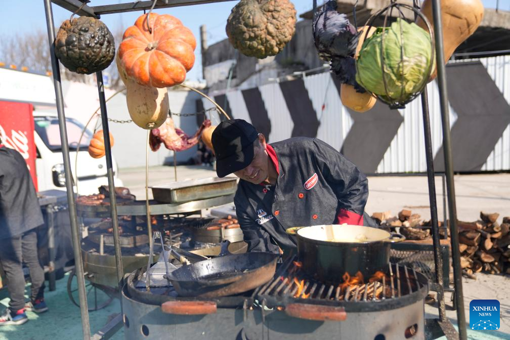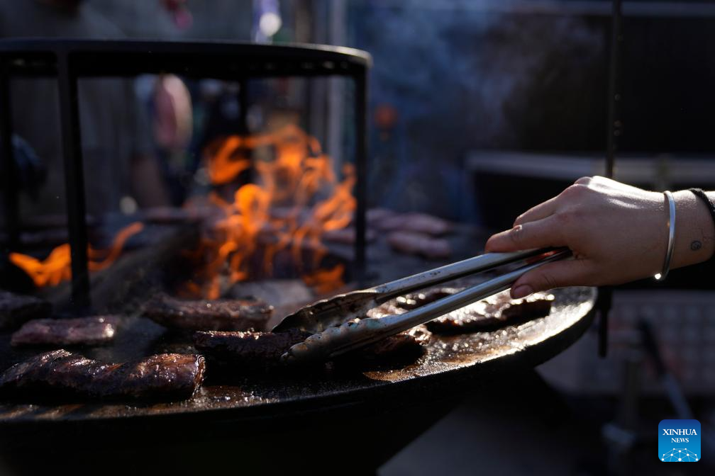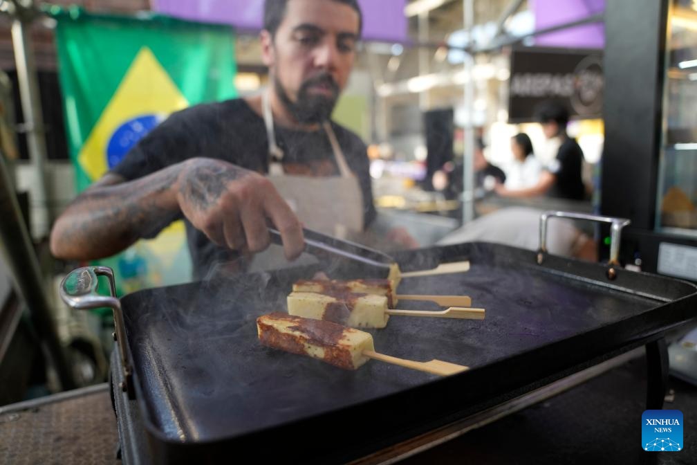 MONTEVIDEO, 9 junio, 2024 (Xinhua) -- Un cocinero prepara alimentos durante el festival gastronómico "Ollas del mundo", en el Espacio Modelo, en Montevideo, capital de Uruguay, el 9 de junio de 2024. (Xinhua/Nicolás Celaya)