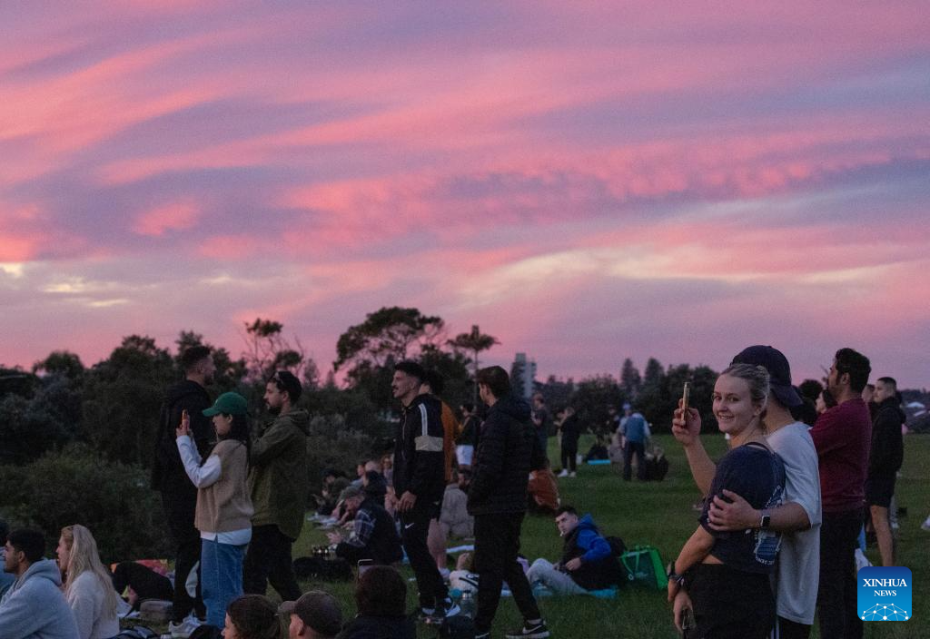 SIDNEY, 9 junio, 2024 (Xinhua) -- Personas disfrutan del atardecer desde la Reserva Dudley Page, en Sídney, Australia, el 9 de junio de 2024. (Xinhua/Ma Ping)