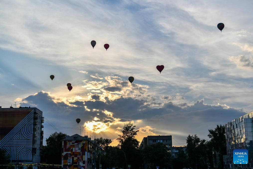 NIZHNY NOVGOROD, 11 junio, 2024 (Xinhua) -- Imagen del 9 de junio de 2024 de globos volando en Nizhny Novgorod, Rusia. (Xinhua/Cao Yang)