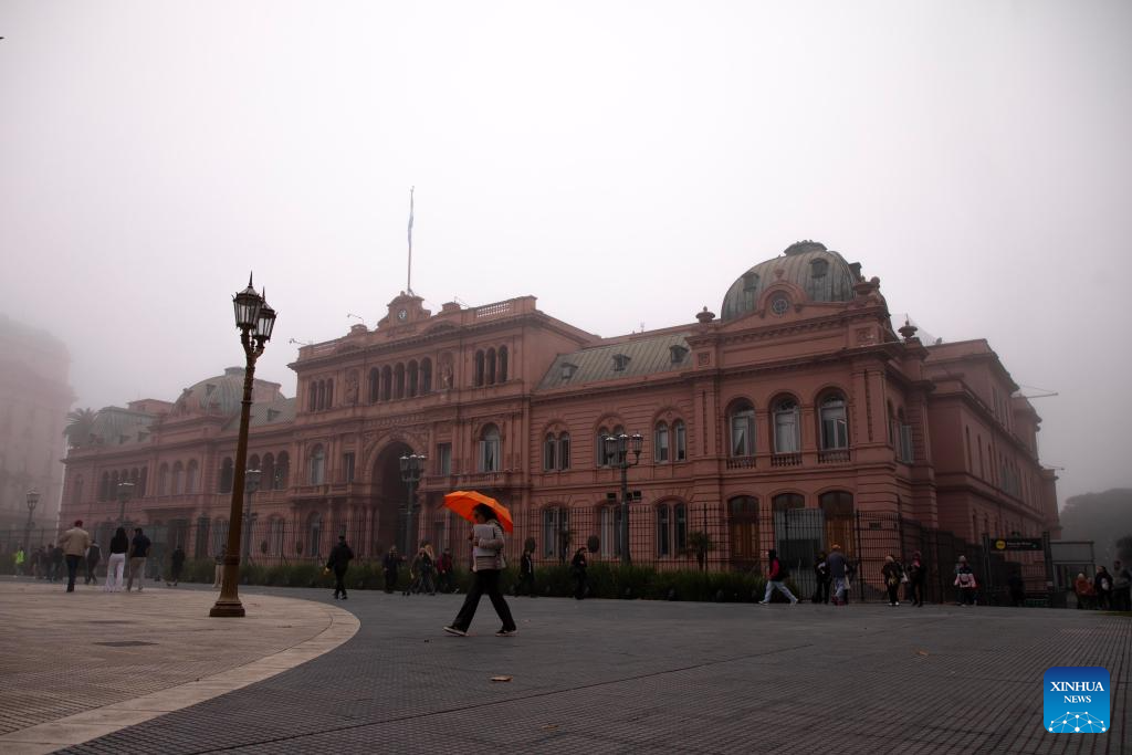 BUENOS AIRES, 12 junio, 2024 (Xinhua) -- La Casa Rosada es cubierta por una densa niebla, en la ciudad de Buenos Aires, capital de Argentina, el 12 de junio de 2024. (Xinhua/Martín Zabala)