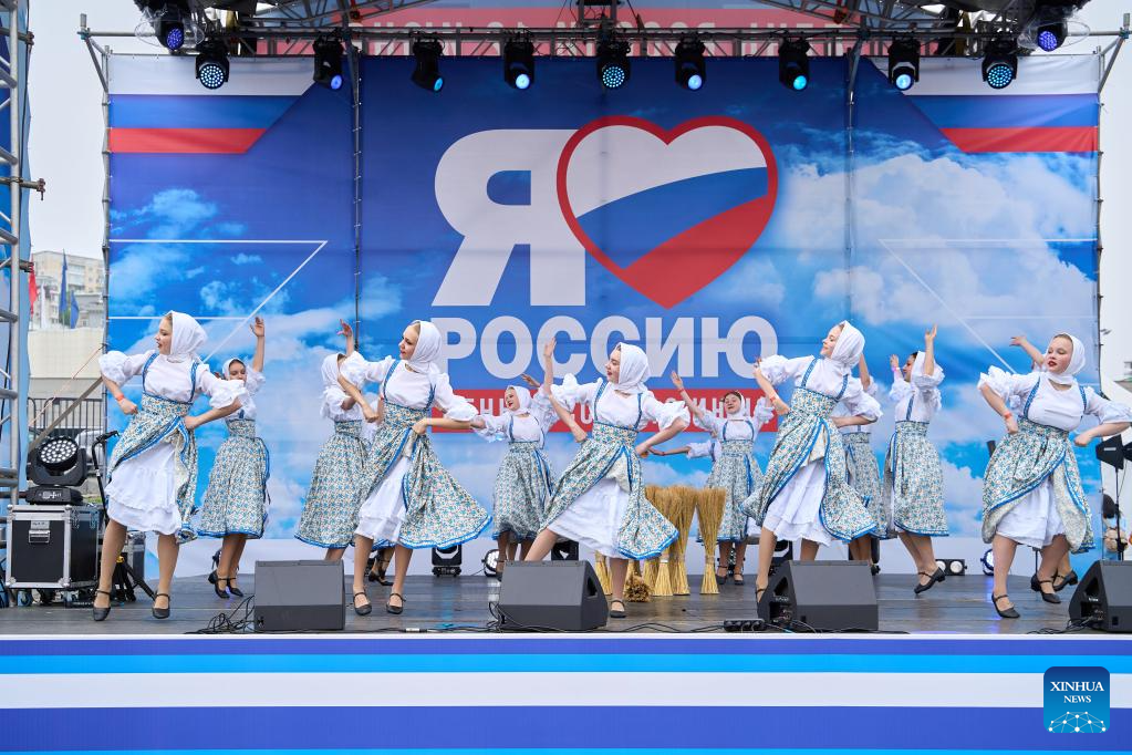VLADIVOSTOK, 12 junio, 2024 (Xinhua) -- Actrices realizan una danza tradicional rusa durante la celebración del Día de Rusia, en Vladivostok, Rusia, el 12 de junio de 2024. El Día de Rusia marca la fecha en que el Primer Congreso de Diputados del Pueblo de la Federación Rusa adoptó la Declaración de Soberanía Nacional de Rusia en 1990. (Xinhua/Guo Feizhou)