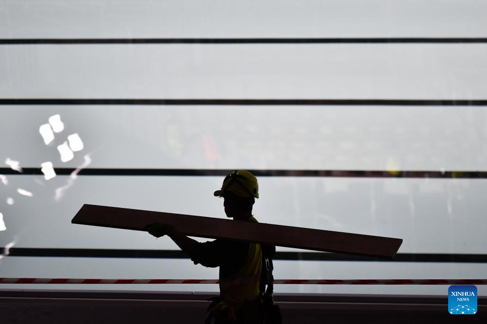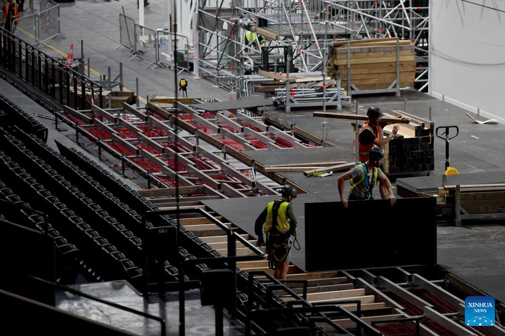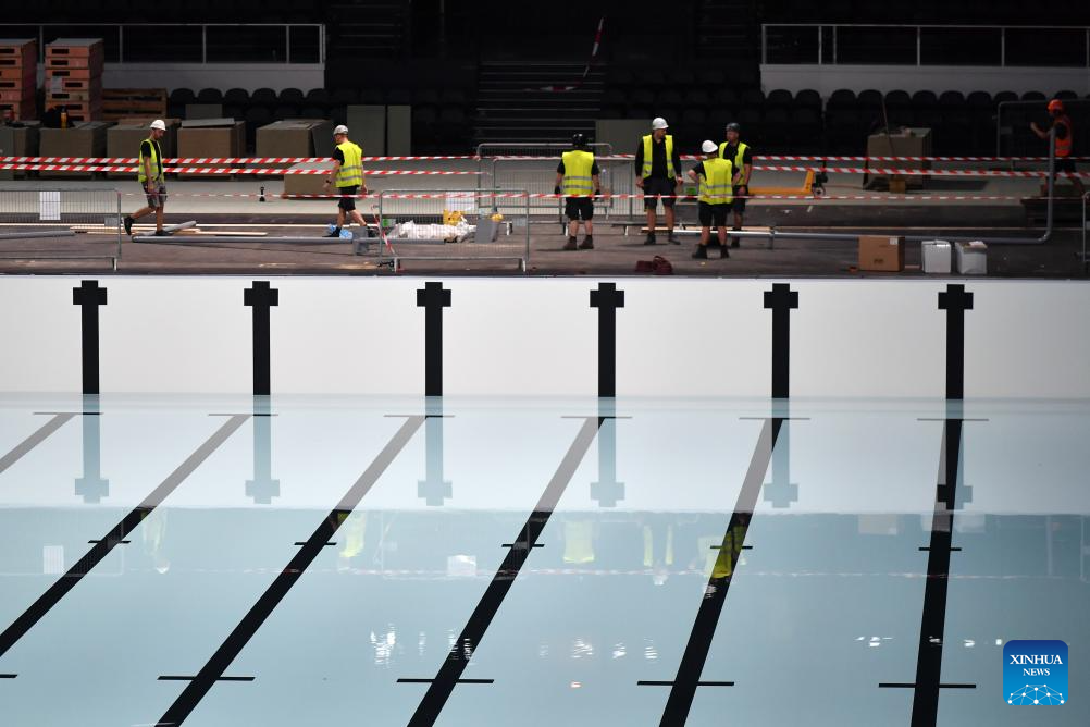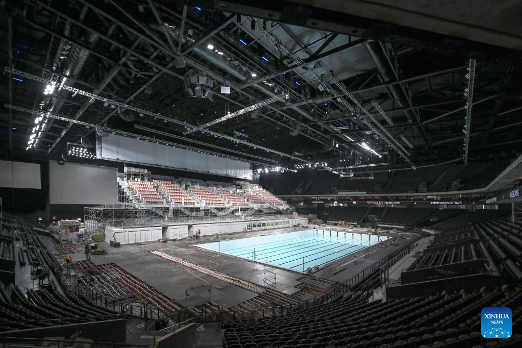 NANTERRE, 12 junio, 2024 (Xinhua) -- Imagen del 12 de junio de 2024 del sitio de construcción en el interior del París La Defense Arena para los próximos Juegos Olímpicos y Paralímpicos, en Nanterre, Francia. El París La Defense Arena acogerá eventos deportivos como natación y waterpolo durante los Juegos Olímpicos de París 2024. (Xinhua/Julien Mattia)