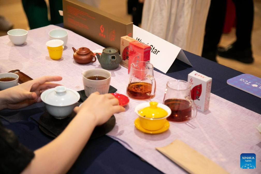 NUEVA YORK, 13 junio, 2024 (Xinhua) -- Imagen del 12 de junio de 2024 de muestras de té Wuyi Star servidas durante la gran gala de inauguración del centro culinario lanzado por el Instituto de China, en Nueva York, Estados Unidos. El Instituto de China en América lanzó su centro culinario aquí el miércoles, creando una plataforma dedicada a mostrar y promover la auténtica cocina y cultura chinas. La gran gala de inauguración del centro se llevó a cabo en la sede del Instituto de China, una organización estadounidense sin fines de lucro fundada por distinguidos educadores chinos y estadounidenses para profundizar en el conocimiento de China en el mundo. (Xinhua/Michael Nagle)