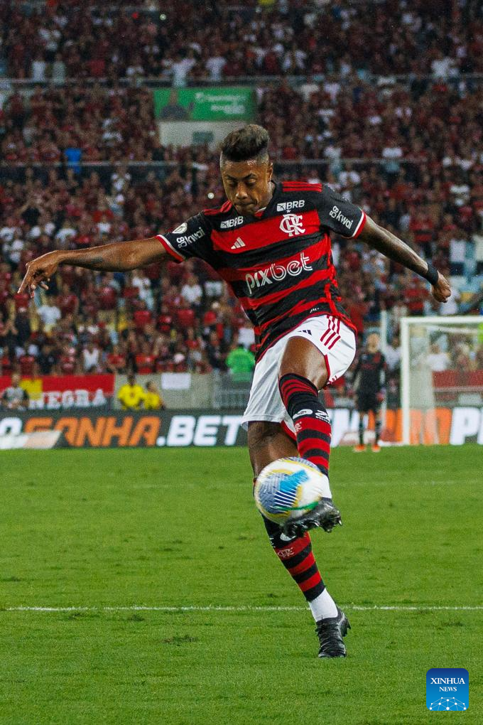 RIO DE JANEIRO, 14 junio, 2024 (Xinhua) -- Imagen del 13 de junio de 2024 del jugador Bruno Henrique, de Flamengo, controlando el balón durante el partido correspondiente a la jornada 8 del Campeonato Brasileño Serie A, ante Gremio, celebrado en el Estadio Maracaná, en Río de Janeiro, Brasil. (Xinhua/Claudia Martini)