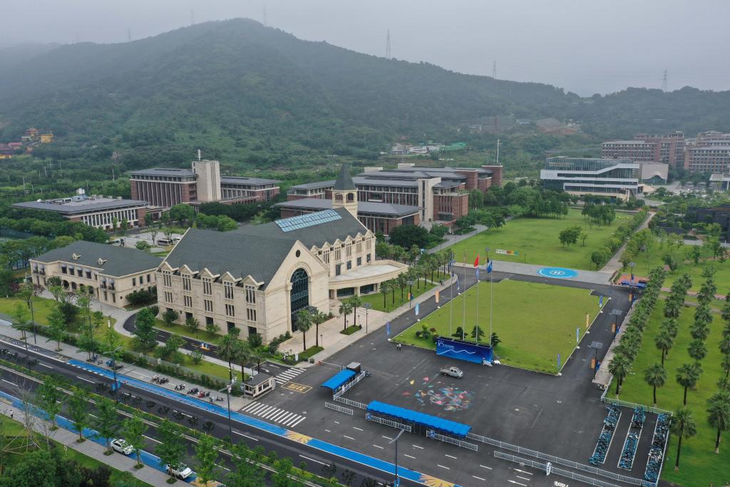 TIANJIN, 14 junio, 2024 (Xinhua) -- Vista aérea tomada con un dron de modelos presentando creaciones durante la Semana de la Moda de Tianjin 2024, en Tianjin, en el norte de China, el 14 de junio de 2024. La semana de la moda comenzó aquí el viernes y durará hasta el 26 de junio. (Xinhua/Sun Fanyue)