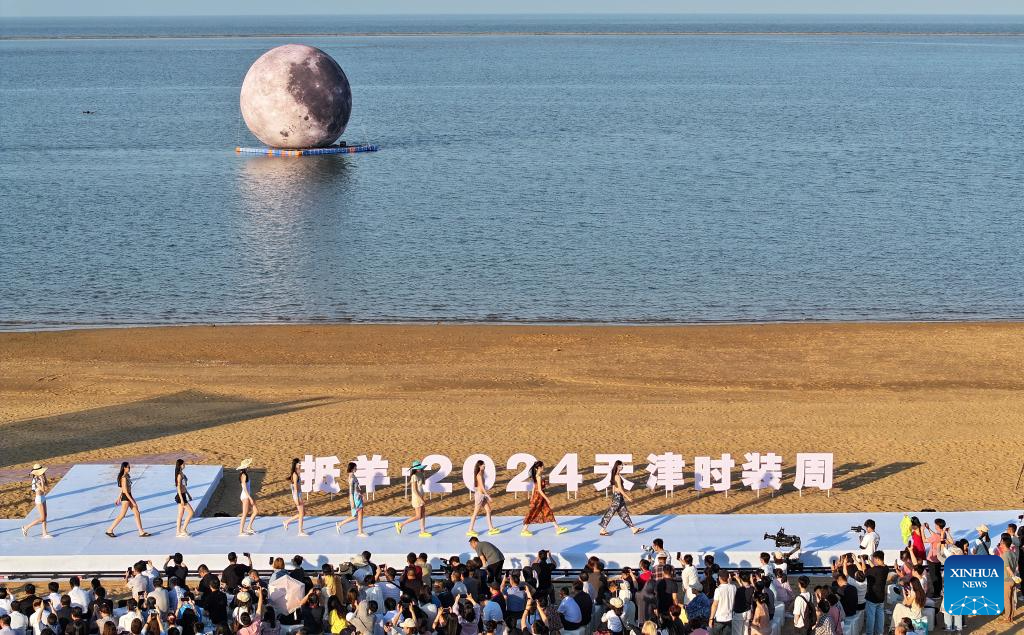 TIANJIN, 14 junio, 2024 (Xinhua) -- Modelos presentan creaciones durante la Semana de la Moda de Tianjin 2024, en Tianjin, en el norte de China, el 14 de junio de 2024. La semana de la moda comenzó aquí el viernes y durará hasta el 26 de junio. (Xinhua/Zhao Zishuo)