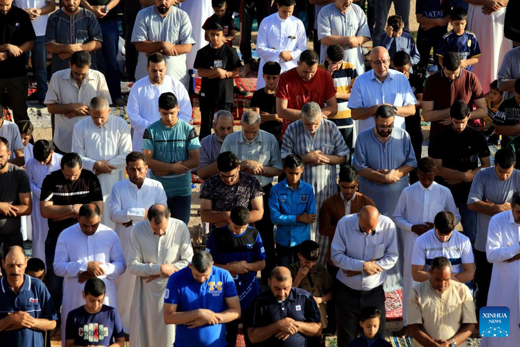 AMAN, 16 junio, 2024 (Xinhua) -- Personas asisten a una oración del Eid al-Adha, en Amán, Jordania, el 16 de junio de 2024. (Xinhua/Mohammad Abu Ghosh)