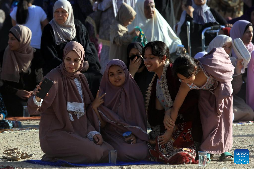 AMAN, 16 junio, 2024 (Xinhua) -- Mujeres se toman fotografías después de la oración del Eid al-Adha, en Amán, Jordania, el 16 de junio de 2024. (Xinhua/Mohammad Abu Ghosh)