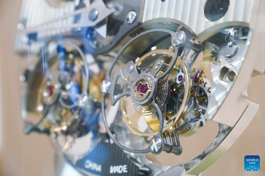 DANDONG, 18 junio, 2024 (Xinhua) -- Imagen del 18 de junio de 2024 de un modelo de reloj de movimiento en Liaoning Peacock Watch Co., Ltd., en la ciudad de Dandong, en la provincia de Liaoning, en el noreste de China. La industria relojera es una de las industrias tradicionales de la ciudad de Dandong. En los últimos años, Dandong ha promovido vigorosamente la innovación tecnológica y cultivado empresas innovadoras, con el fin de mejorar las industrias tradicionales y desarrollar la fabricación de alta tecnología. (Xinhua/Fan Yuqing)