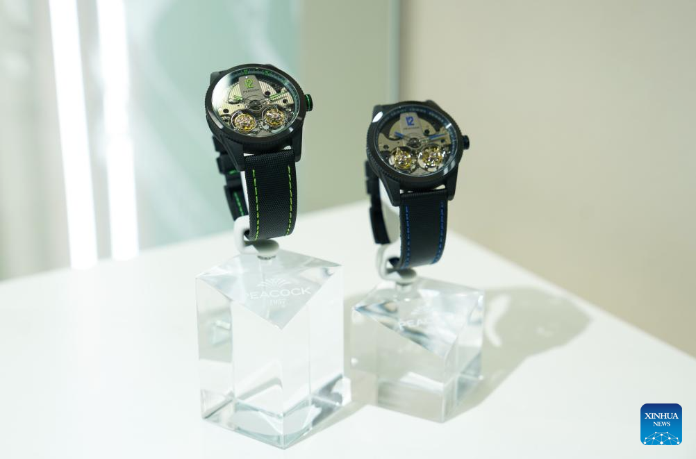DANDONG, 18 junio, 2024 (Xinhua) -- Imagen del 18 de junio de 2024 de relojes en exhibición en Liaoning Peacock Watch Co., Ltd., en la ciudad de Dandong, en la provincia de Liaoning, en el noreste de China. La industria relojera es una de las industrias tradicionales de la ciudad de Dandong. En los últimos años, Dandong ha promovido vigorosamente la innovación tecnológica y cultivado empresas innovadoras, con el fin de mejorar las industrias tradicionales y desarrollar la fabricación de alta tecnología. (Xinhua/Fan Yuqing)