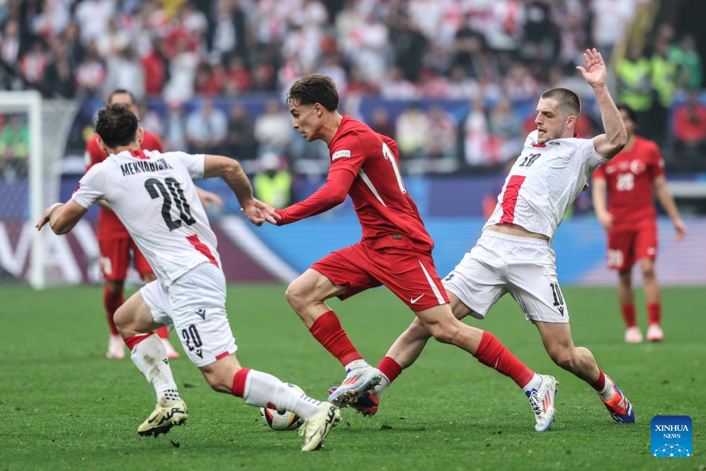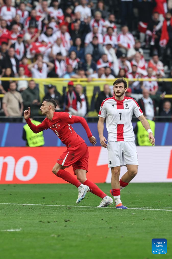 DORTMUND, 19 junio, 2024 (Xinhua) -- Imagen del 18 de junio de 2024 de Arda Guler (3-d), de Turquía, realizando una anotación, durante el partido correspondiente al Grupo F de la EURO 2024 de la UEFA entre Turquía y Georgia, en Dortmund, Alemania. (Xinhua/Pan Yulong)