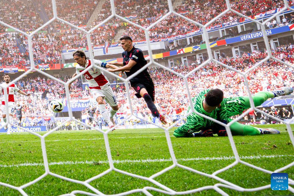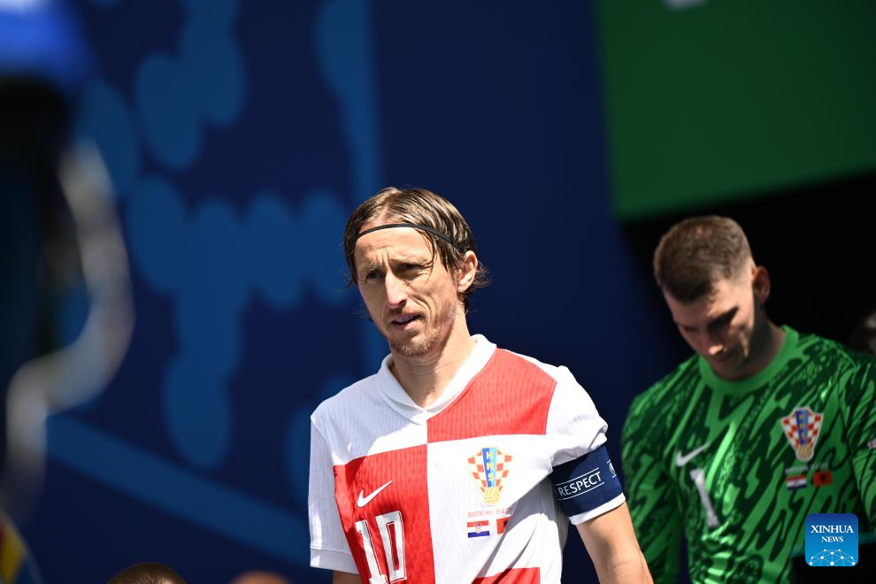 HAMBURGO, 19 junio, 2024 (Xinhua) -- Luka Modric (c), de Croacia, reacciona durante el partido correspondiente al Grupo B de la EURO 2024 de la UEFA entre Croacia y Albania, en Hamburgo, Alemania, el 19 de junio de 2024. (Xinhua/Xiao Yijiu)