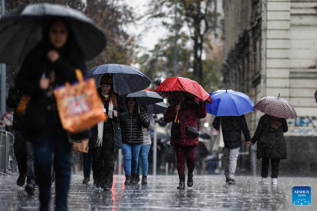 SANTIAGO, 21 junio, 2024 (Xinhua) -- Una persona se protege de la lluvia, en Santiago, capital de Chile, el 21 de junio de 2024. (Xinhua/Jorge Villegas)