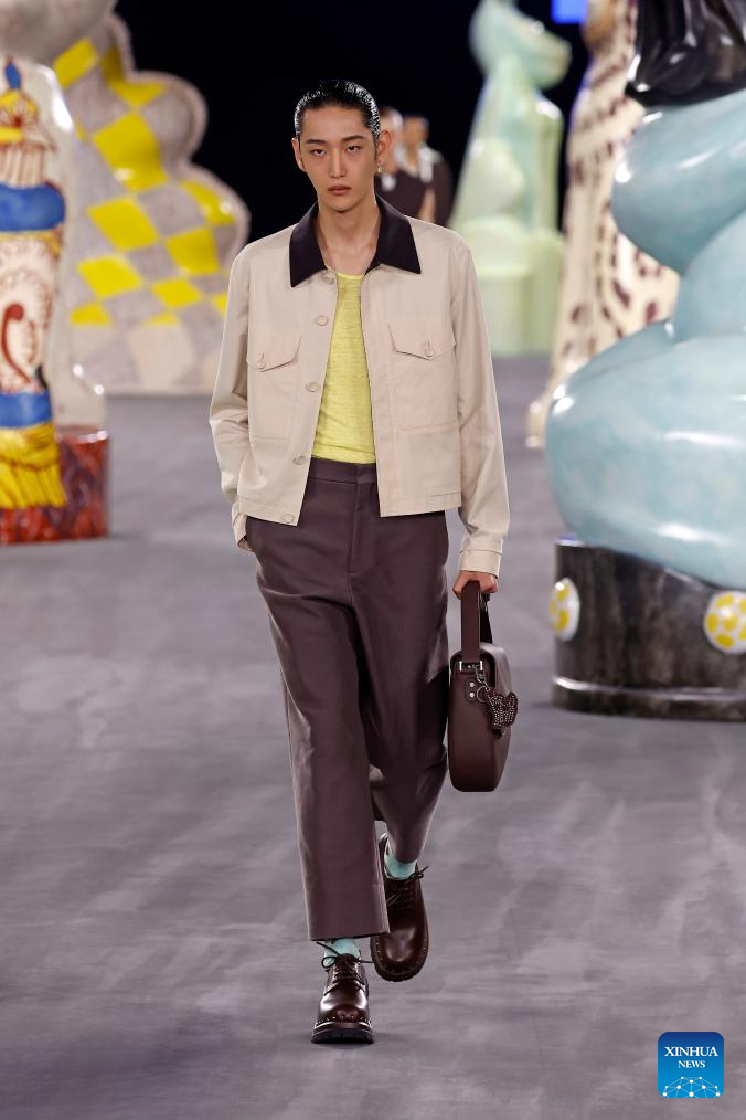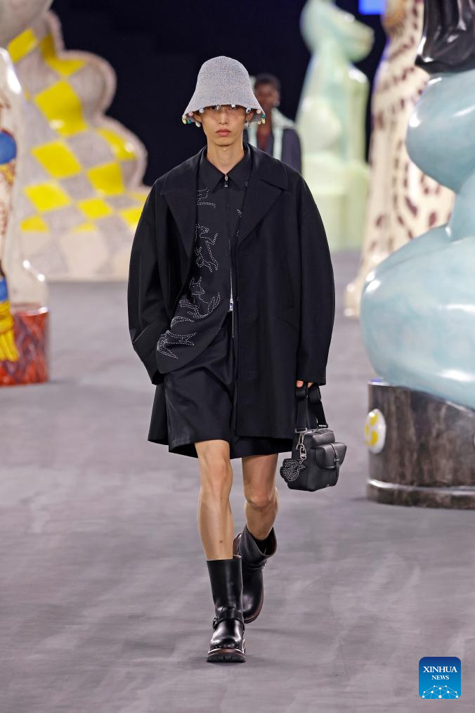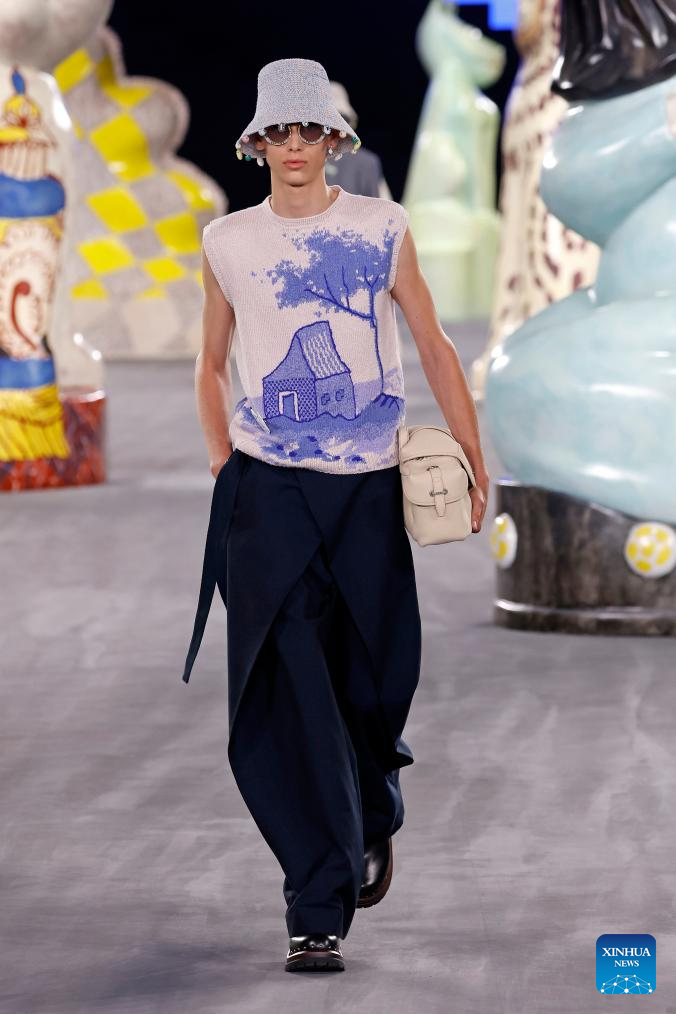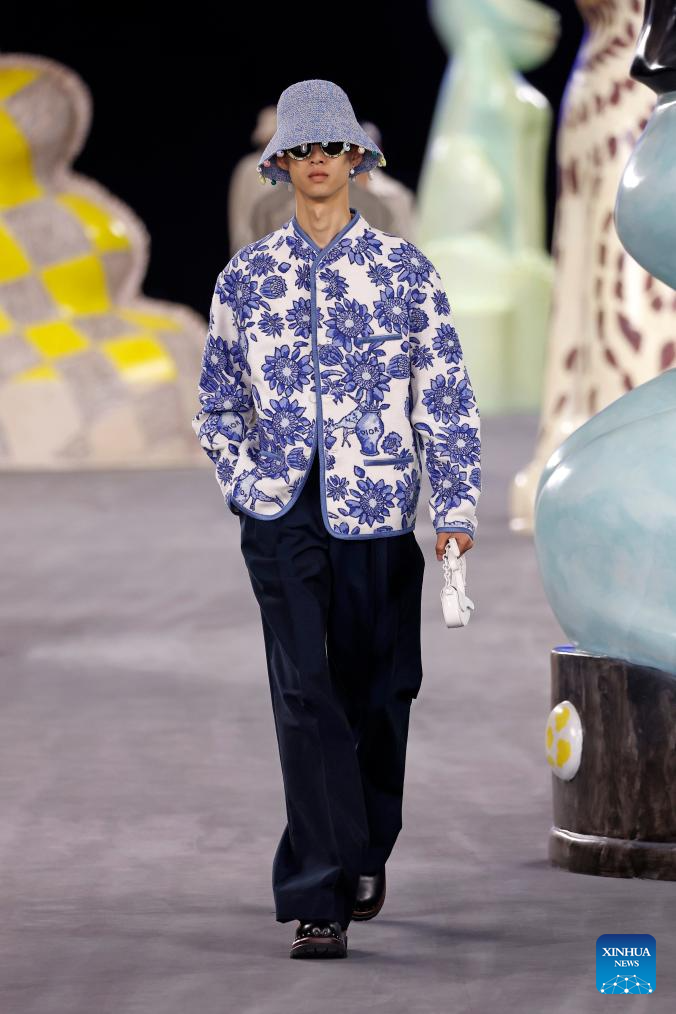 PARIS, 21 junio, 2024 (Xinhua) -- Un modelo presenta una creación de la colección de Ropa para Hombre Primavera/Verano 2025 de Dior Homme durante la Semana de la Moda de París, en París, Francia, el 21 de junio de 2024. (Xinhua/MeetEurope)
